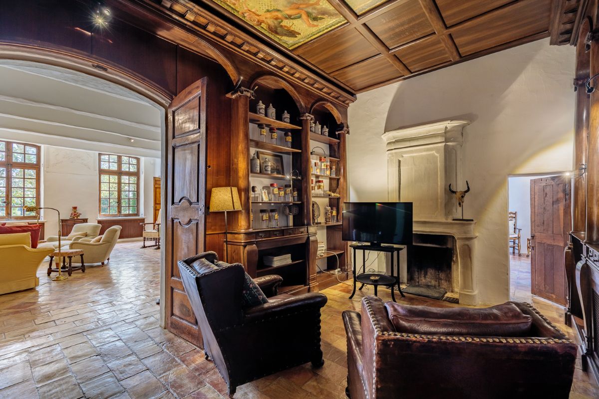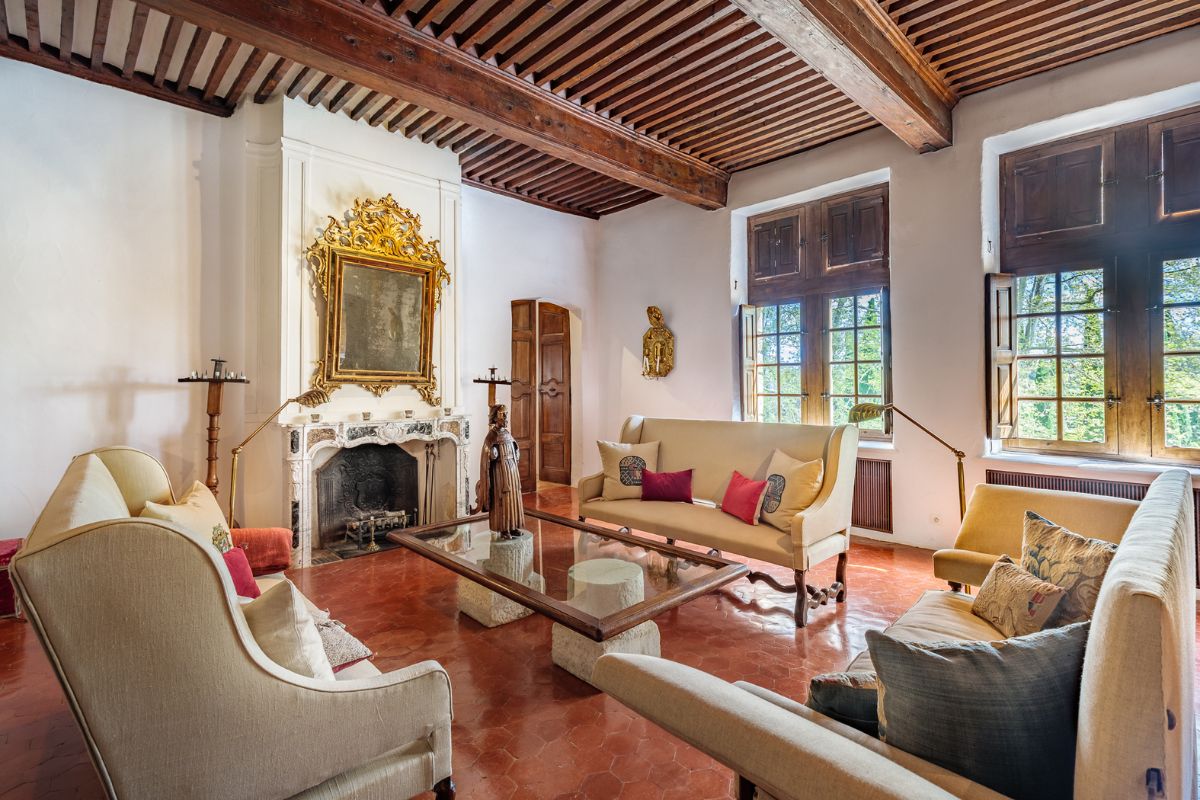 The main château offers 1,000 square meters of elegant living space across restored 17th-century architecture. Mullioned windows flood rooms with natural light, while original stone frames and carved details honor the building’s heritage. Reception rooms feature vaulted ceilings and fireplaces.