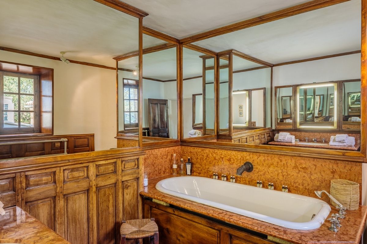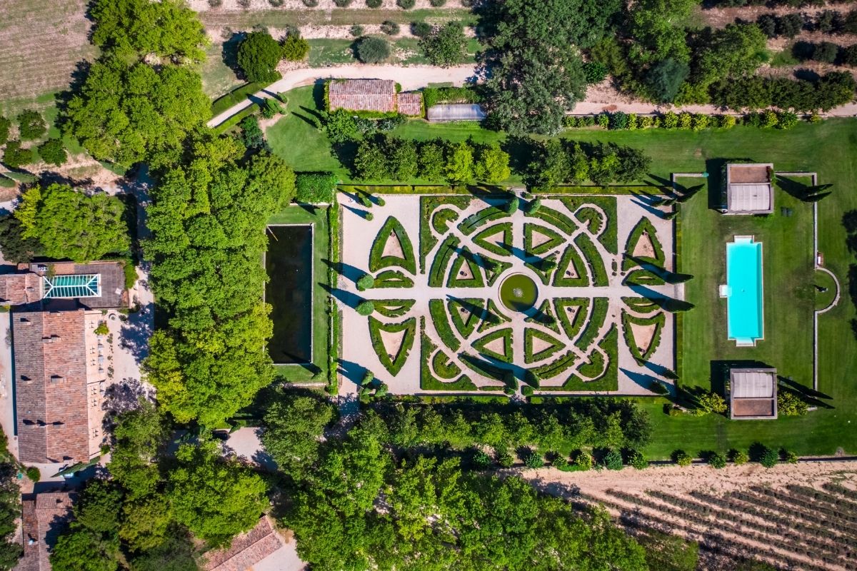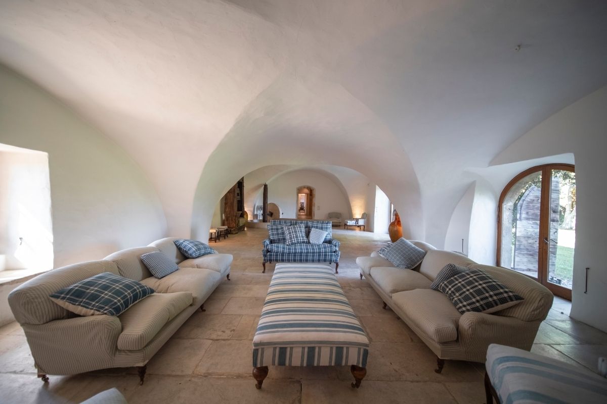 A third independent pool serves the Farmhouse guests within private gardens. Professionally landscaped grounds include formal terraced gardens, shaded areas beneath ancient plane trees, and multiple outdoor dining terraces. The 1661 vaulted chapel provides an unforgettable setting for celebrations.