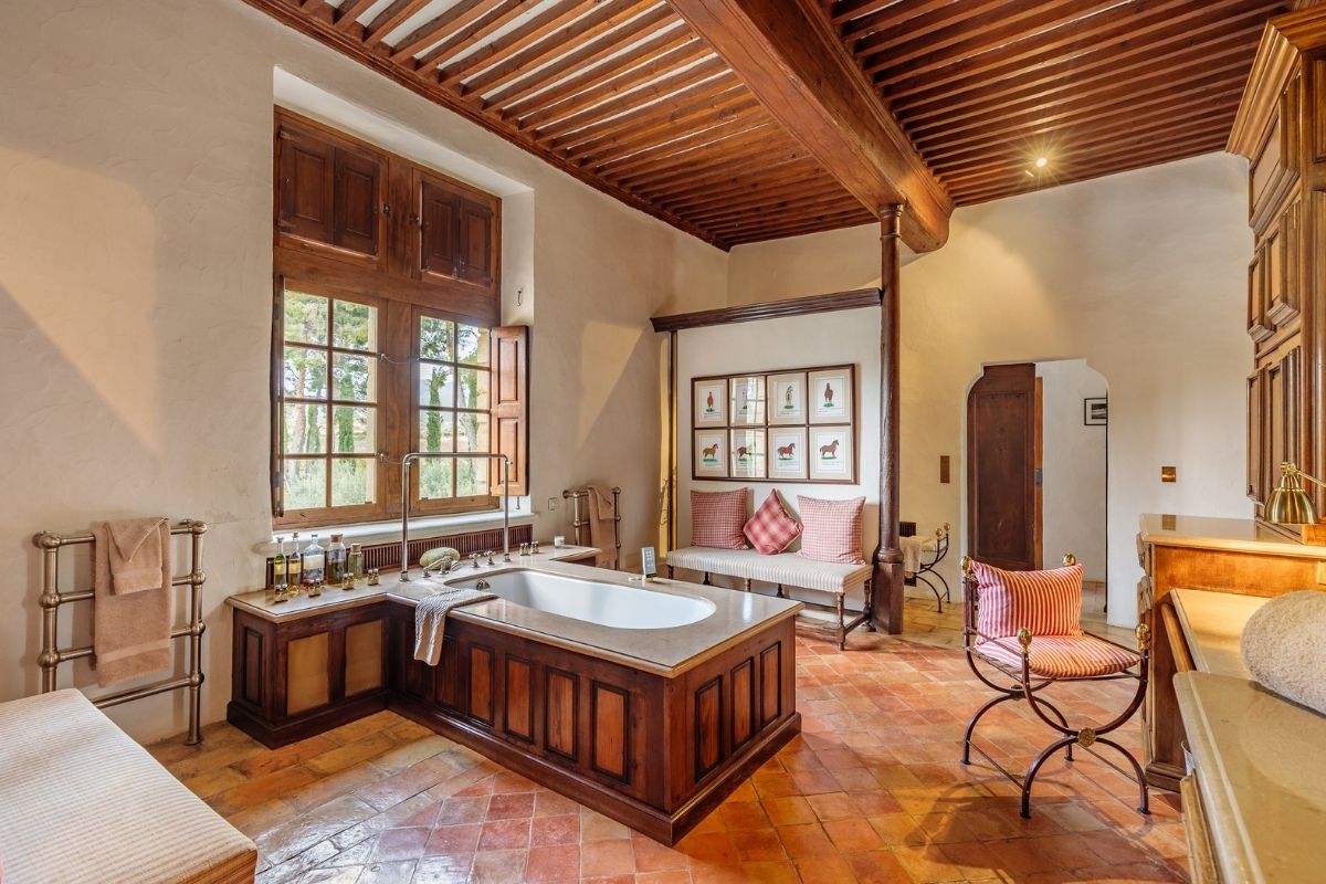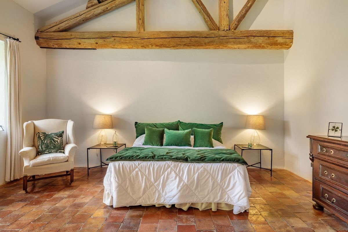 The estate’s unique configuration offers unparalleled flexibility. Three distinct buildings—the Main Château, the Farmhouse, and the Maison d’Amis—can be rented individually or together, accommodating intimate gatherings of 14 guests or grand celebrations of up to 32. With a 17th-century vaulted chapel, professionally landscaped formal gardens, and views across truffle oaks and olive groves, this is Provençal luxury in its most authentic form.