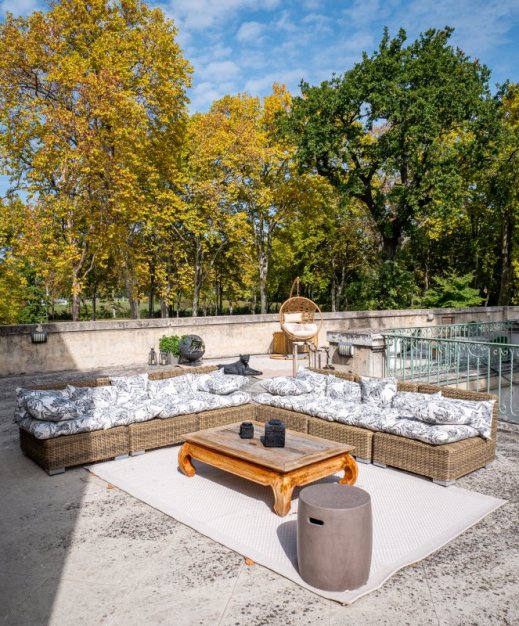 The estate is divided into two different buildings : the 850 sq. meter, nine bedroom Chateau and the 950 sq. meter 7 bedroom farm which can be rented separately. The Chateau and Farm are rented exclusively to one group at a time. Pricing – 35,000€ -50,000€ per week. A 50% deposit is required to confirm booking. Please inquire for more details.