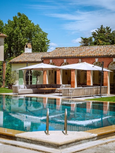 The estate is divided into two different buildings : the 850 sq. meter, nine bedroom Chateau and the 950 sq. meter 7 bedroom farm which can be rented separately. The Chateau and Farm are rented exclusively to one group at a time. Pricing – 35,000€ -50,000€ per week. A 50% deposit is required to confirm booking. Please inquire for more details.