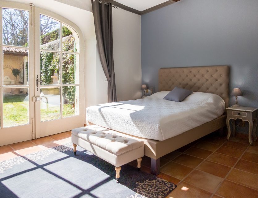 Bedroom 1 – King bed with large en-suite bathroom (Tub, shower, 2 sinks, WC). Dressing. Terrace with views on Mont Ventoux.