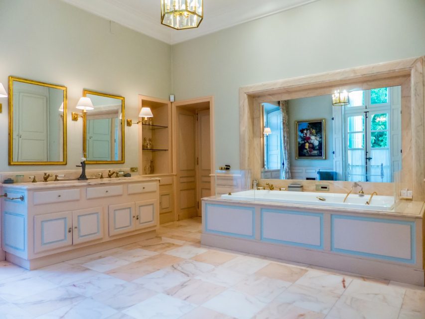 The Chateau has three main bedroom suites (with king-size beds) – one suite on the ground floor and two on the second story – all en-suite with a separate shower. Six other bedrooms (four king-size and two twin) are on the second floor, each with its own bathroom.