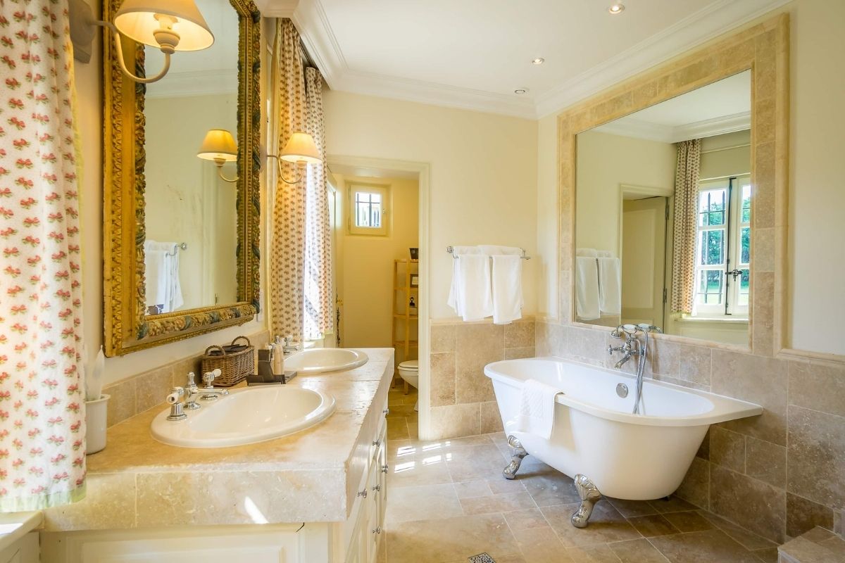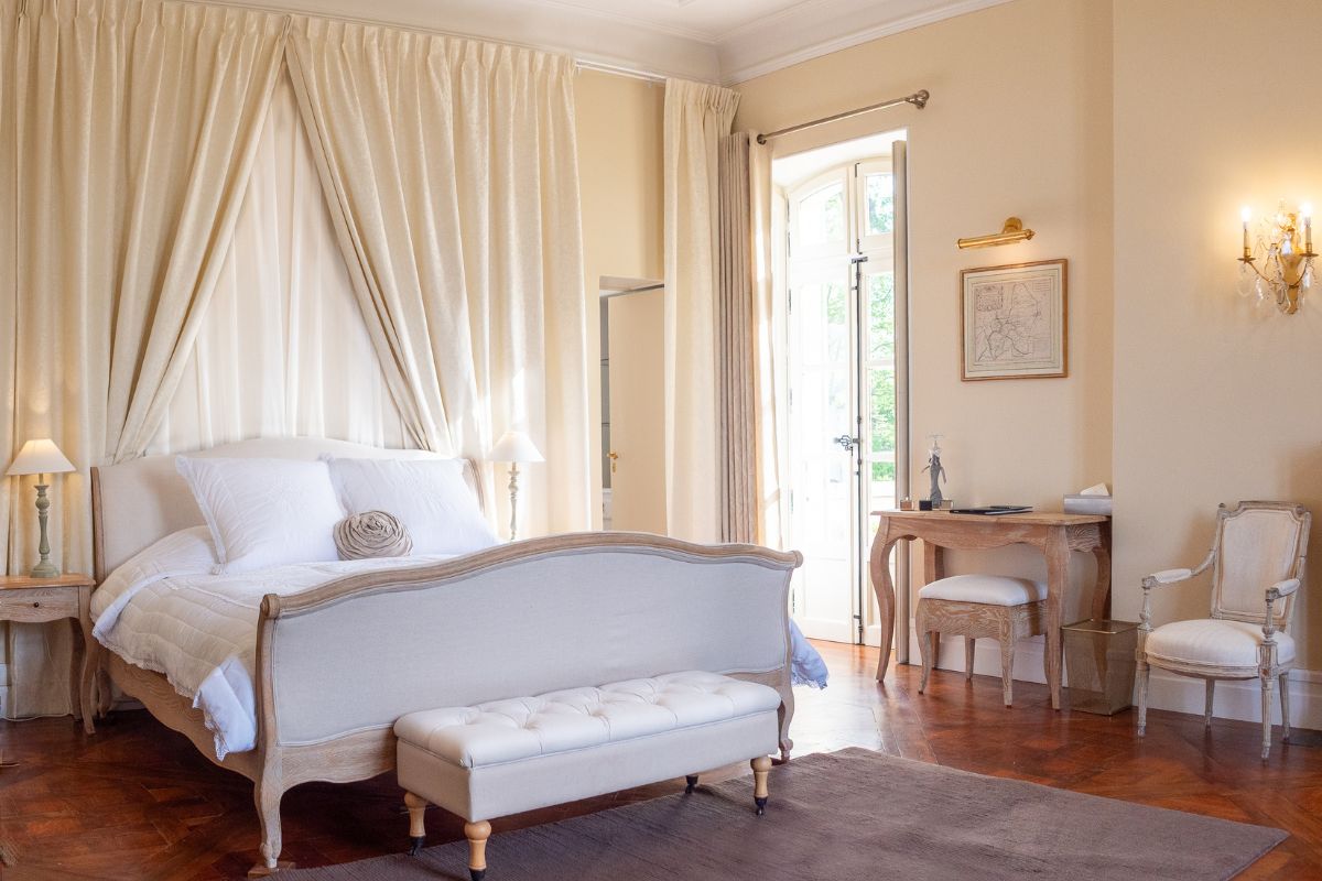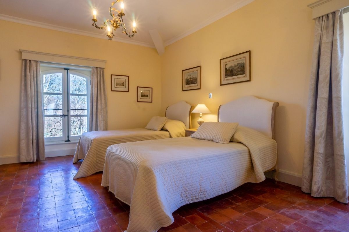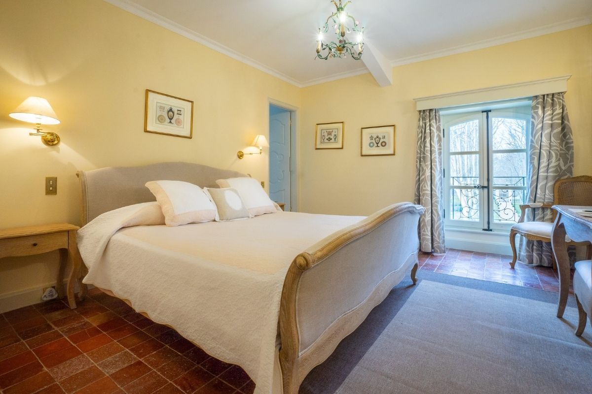 Château Rhône offers flexible accommodation depending on your group size. Rent the nine-bedroom château for intimate gatherings of up to 16 guests, or expand to include the farmhouse for a total of sixteen en-suite bedrooms sleeping up to 29 guests. Both buildings feature quality linens, private bathrooms, and thoughtful amenities throughout.