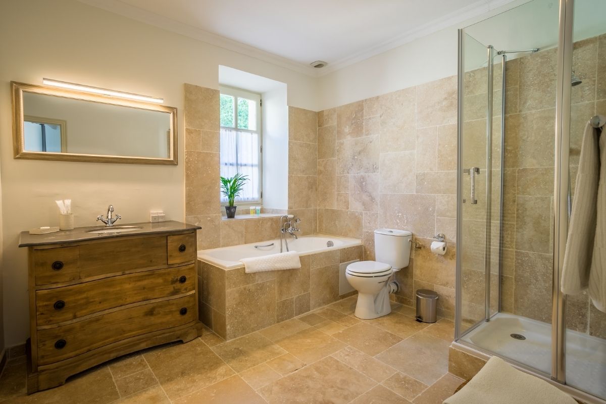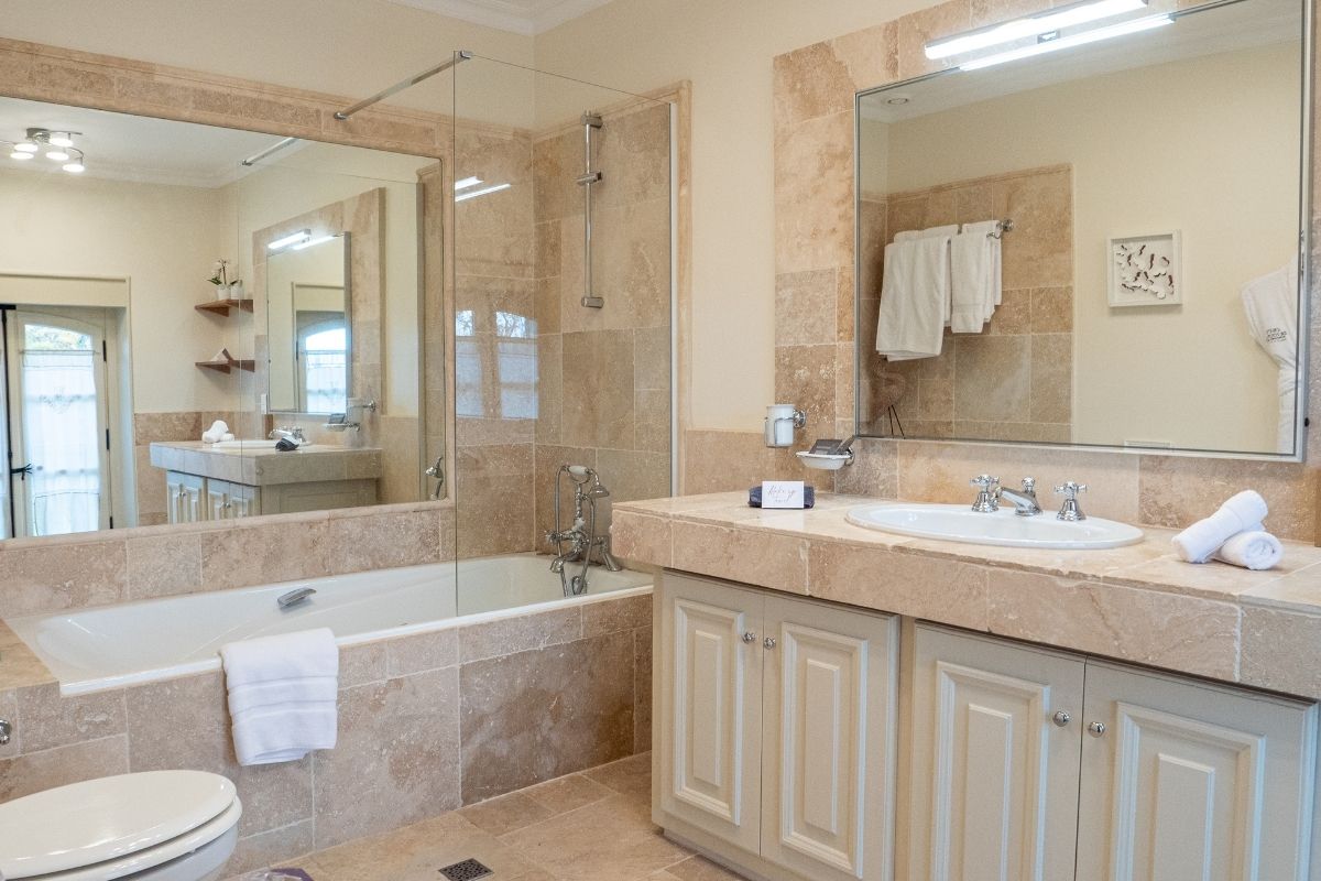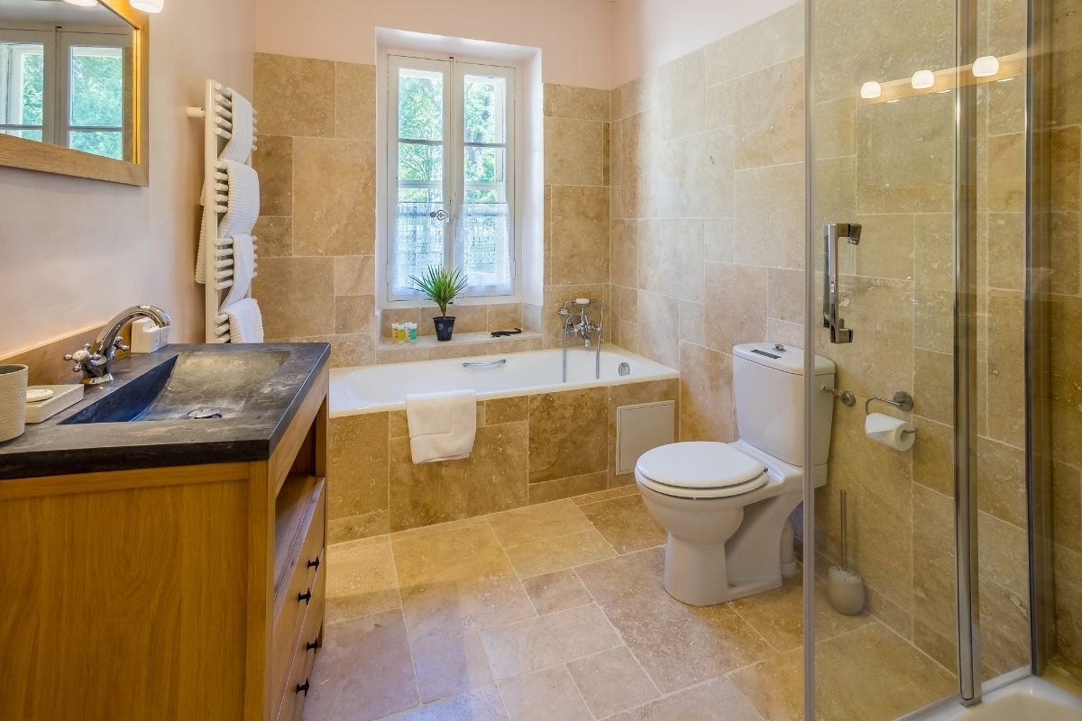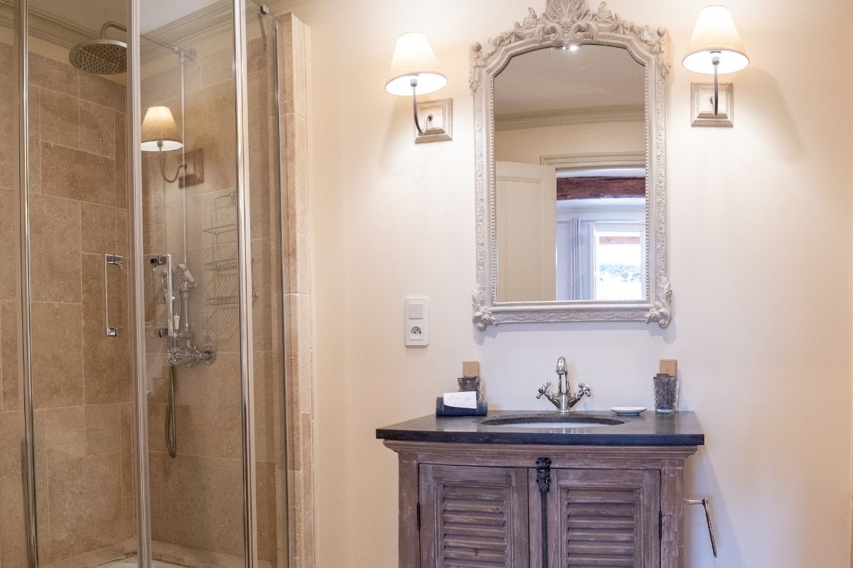 Château Rhône offers flexible accommodation depending on your group size. Rent the nine-bedroom château for intimate gatherings of up to 16 guests, or expand to include the farmhouse for a total of sixteen en-suite bedrooms sleeping up to 29 guests. Both buildings feature quality linens, private bathrooms, and thoughtful amenities throughout.