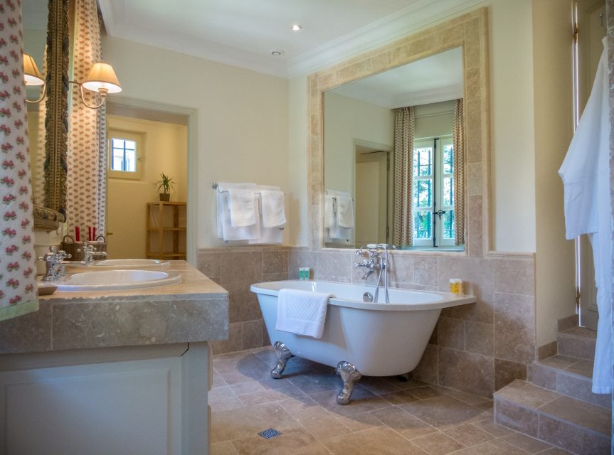 The Chateau has three main bedroom suites (with king-size beds) – one suite on the ground floor and two on the second story – all en-suite with a separate shower. Six other bedrooms (four king-size and two twin) are on the second floor, each with its own bathroom.