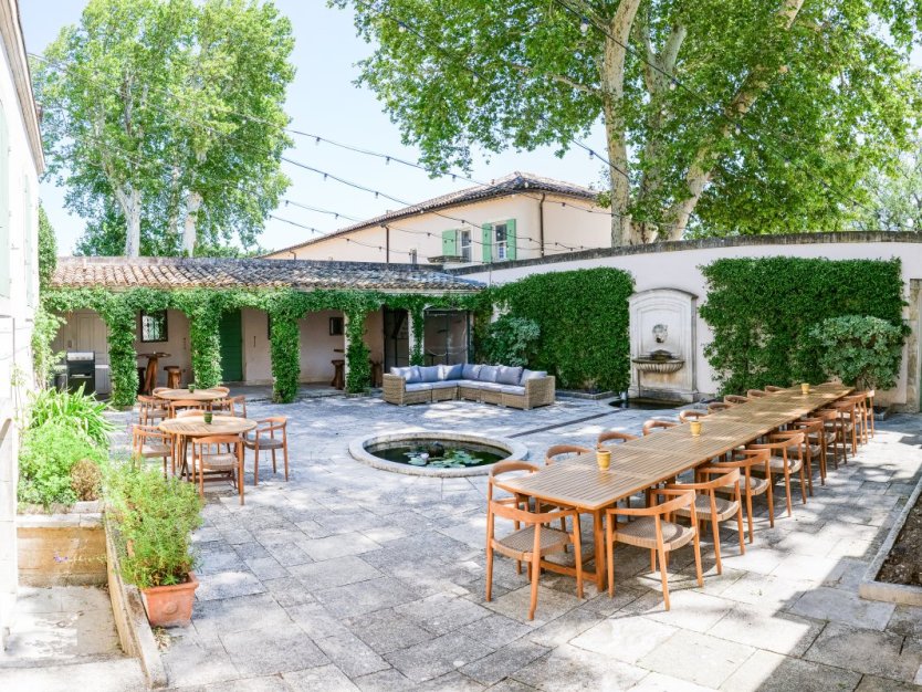 Relax in this stunning fully serviced 18th Century Château, beautifully restored to its former glory, furnished with exceptional European and Provencal art and decoration. This fully staffed Château is the ideal location to celebrate special occasions in Provence complete with nine bedrooms, three reception rooms, a library, and a large formal dining room with seating for up to fifteen people. For larger groups, have the option of renting a more simple, yet tastefully renovated seven bedroom farm situated on the vast grounds. The Château boasts a charming, internal courtyard complete with fountains, aviaries and jasmine covered walls. The rare jewel of this distinguished property is its ancient 17th century chapel which is recognized as a historic monument by the French government.