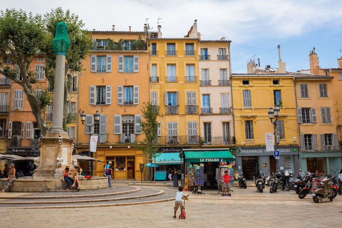 Aix is known for its fountains, historic squares, art museums, markets, and refined lifestyle. The city has a strong cultural identity shaped by architecture, gastronomy, and daily outdoor life.