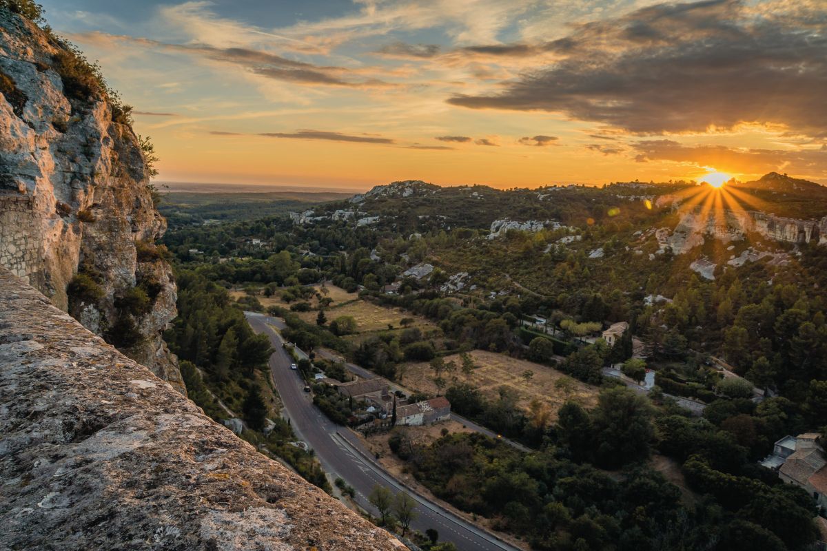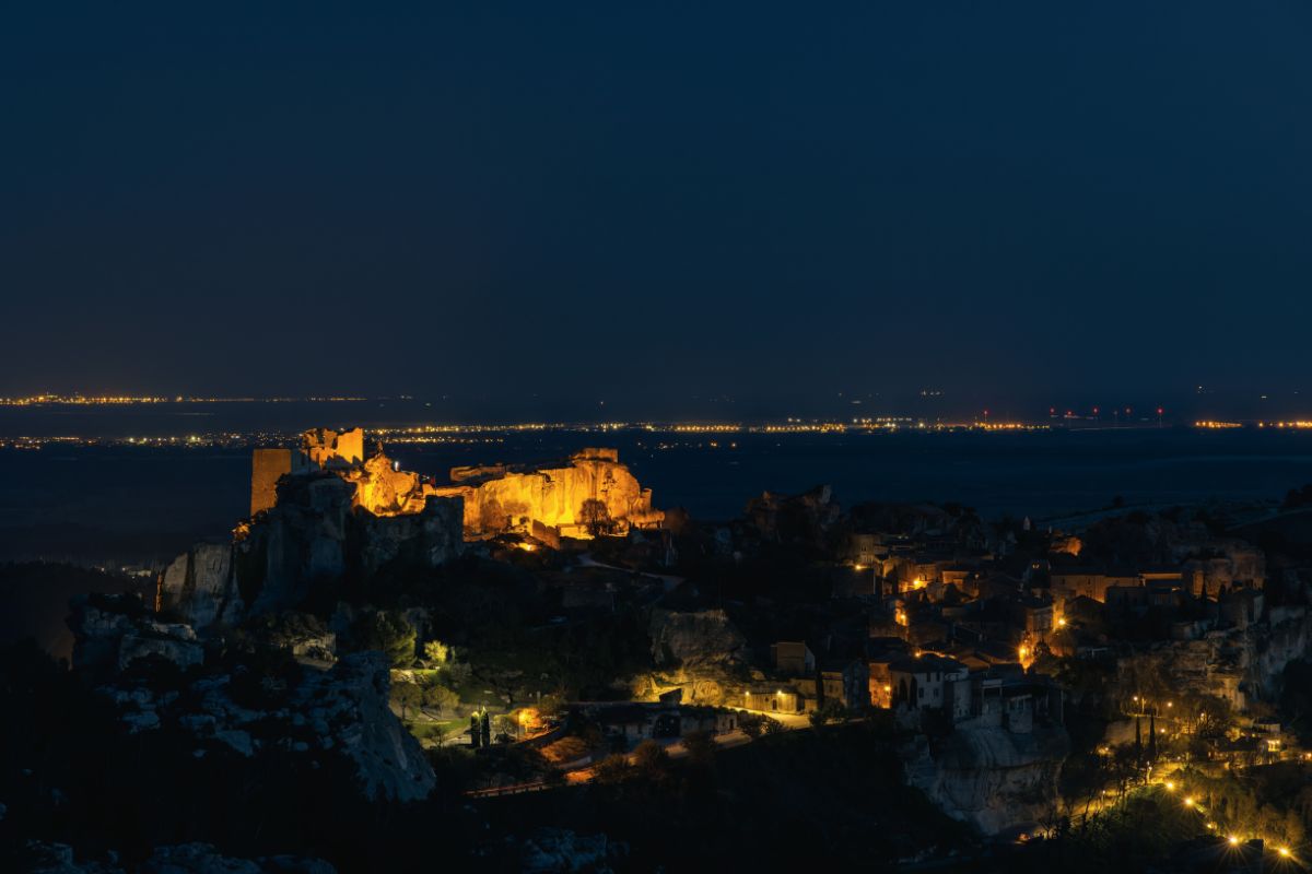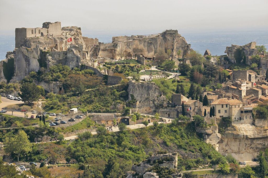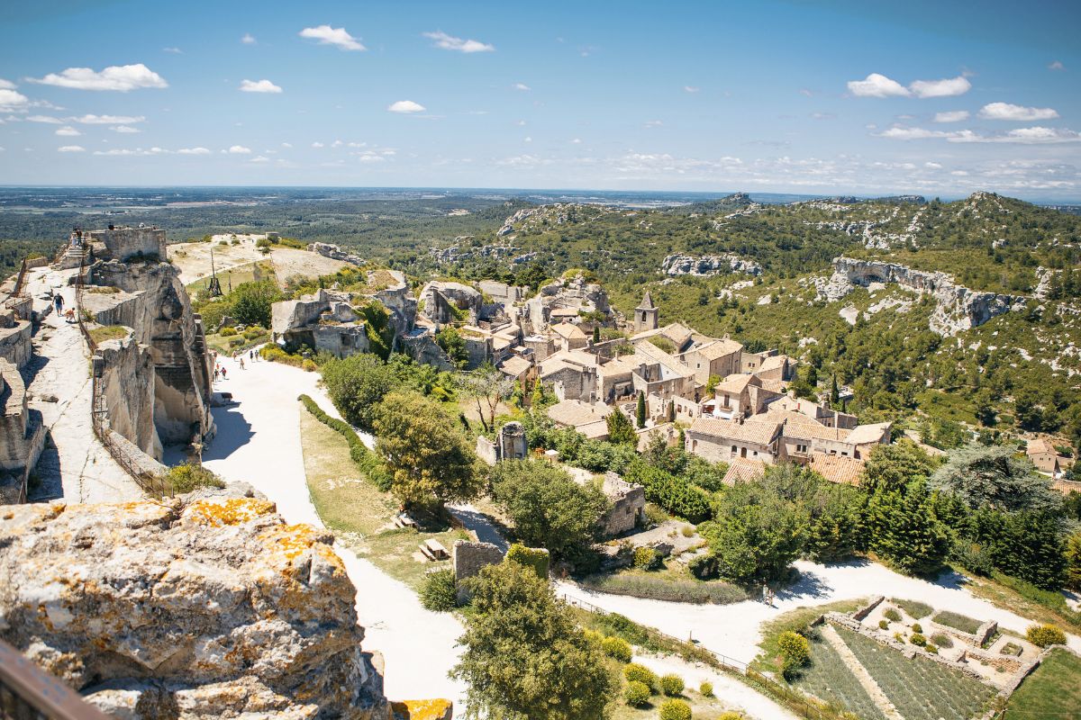 A dramatic hilltop village shaped by cliffs, castle ruins, and sweeping Alpilles views.