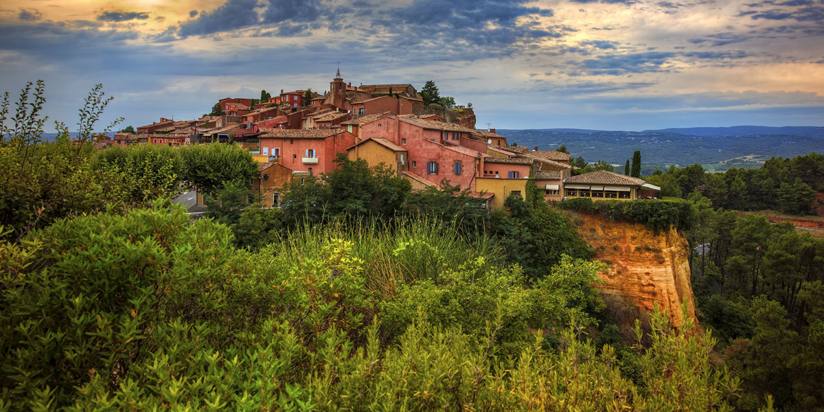 Rooted in its red ochre hills, Roussillon has attracted artists since the beginning of its time. As a result, visitors will enjoy browsing the myriad of art boutiques and galleries. In the high tourist season the village attracts crowds, while the winter months can be quite sleepy. Ideal months to visit this special spot are during the Spring and Fall seasons when ochre hills themselves are covered in the vibrant colors of the season-- be it spring flowers or autumn leaves.