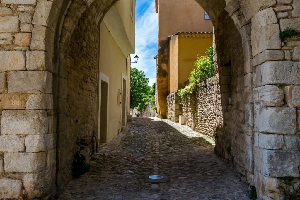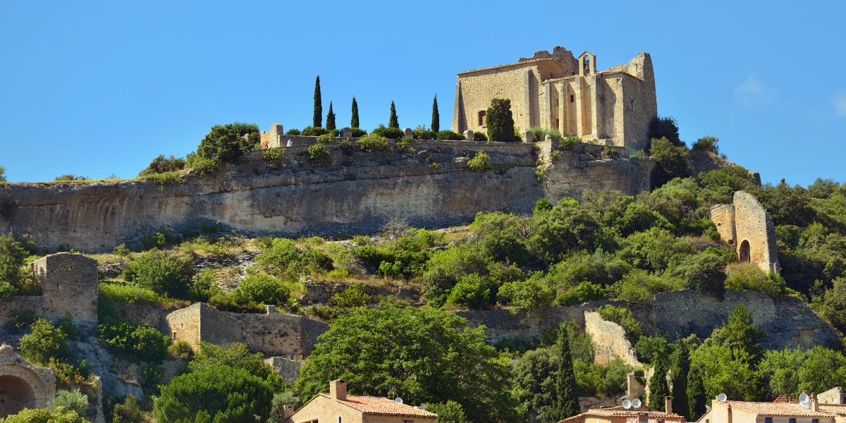 Walk up through the cobbled streets to the castle ruins, where panoramic views stretch across the Monts de Vaucluse, the Colorado Provençal, the Grand and Petit Luberon, and even the Alpilles on clear days.