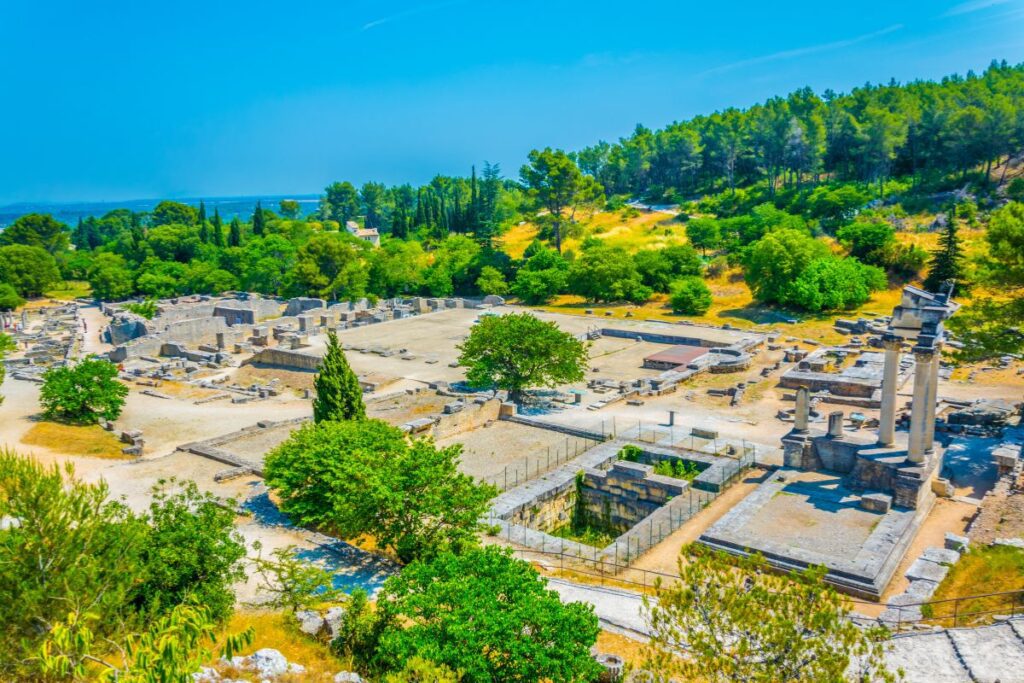 Between 30 and 10 BC, Glanum became a thriving Gallo-Roman city known for its healing springs. Visitors today can explore remarkably preserved ruins, including triumphal arches, temples, public baths, residential avenues, and the Mausoleum of the Julii, one of the finest Roman funerary monuments in France.